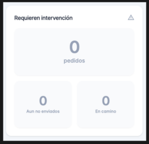 3- Requieren Intervención: Agrupa los pedidos que, aunque se encuentran en etapa de preparación, preparados o en camino, pueda considerarse que se detenga el envío por alguna razón puntual, como una cancelación de compra o un reclamo del comprador.