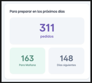 1- Para Preparar Hoy: Muestra la cantidad de pedidos que deben despacharse durante el día. Al hacer clic en la tarjeta, serás redirigido al Módulo de Preparación, donde encontrarás todos esos pedidos ya filtrados y listos para gestionar.