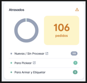 2- Atrasados: Muestra los pedidos que presentan demora en su despacho. Al igual que en la tarjeta anterior, podés visualizar el estado de cada uno: