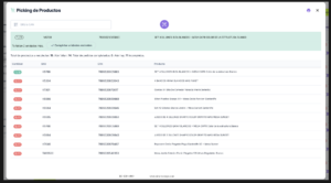 Una vez hecha la selección, hacé clic en el botón INICIAR PICKING. El sistema mostrará un listado con todos los productos que deben ser recolectados, correspondientes a los pedidos seleccionados.